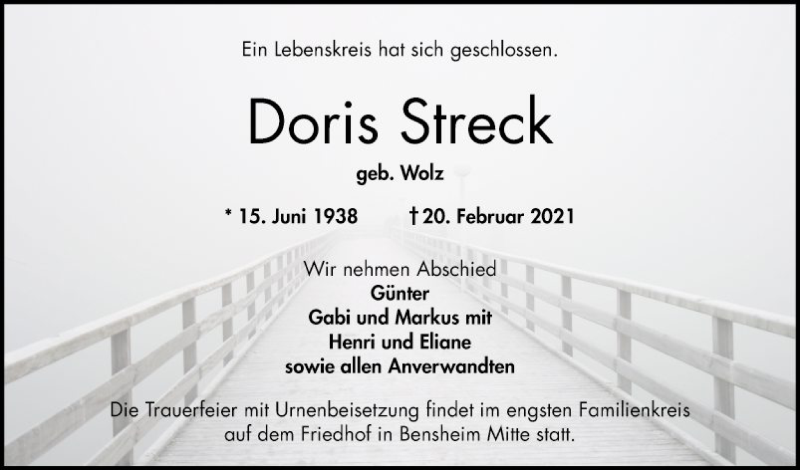 Hier finden Sie alle Traueranzeigen aus der Zeitung, die bisher für Doris Streck erschienen sind. Weitere Traueranzeigen, die in der Zeitung erscheinen, werden hier ebenfalls aufgelistet