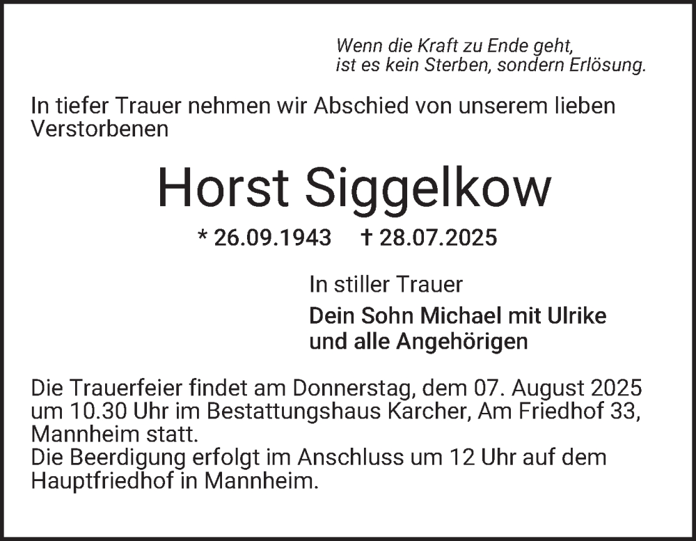 Hier finden Sie alle Traueranzeigen aus der Zeitung, die bisher für Horst Siggelkow erschienen sind. Weitere Traueranzeigen, die in der Zeitung erscheinen, werden hier ebenfalls aufgelistet