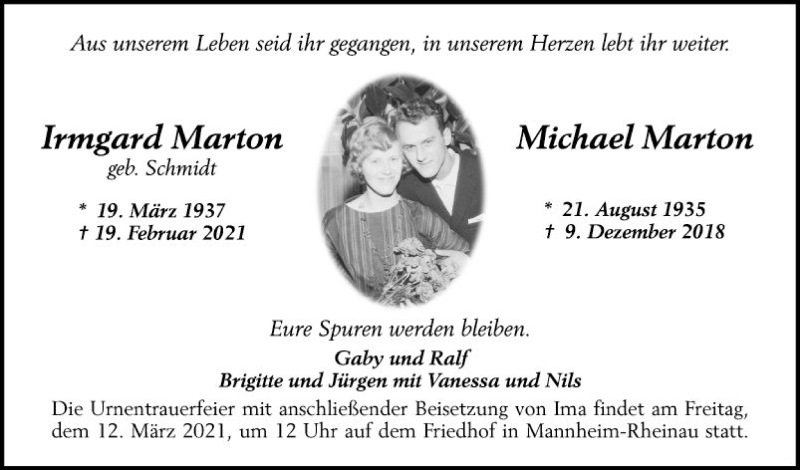 Hier finden Sie alle Traueranzeigen aus der Zeitung, die bisher für Irmgard Marton erschienen sind. Weitere Traueranzeigen, die in der Zeitung erscheinen, werden hier ebenfalls aufgelistet