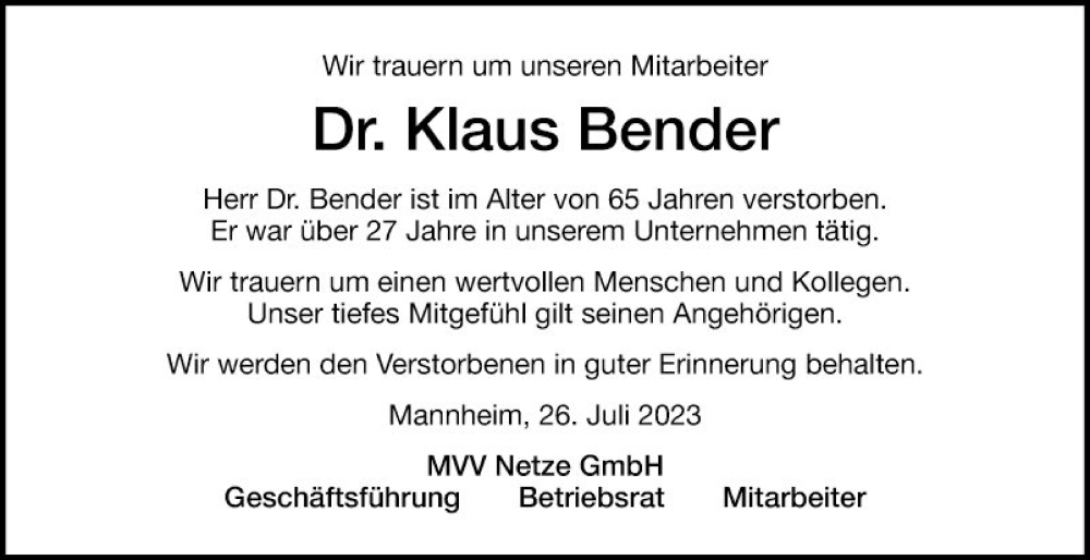 Hier finden Sie alle Traueranzeigen aus der Zeitung, die bisher für Klaus Bender erschienen sind. Weitere Traueranzeigen, die in der Zeitung erscheinen, werden hier ebenfalls aufgelistet