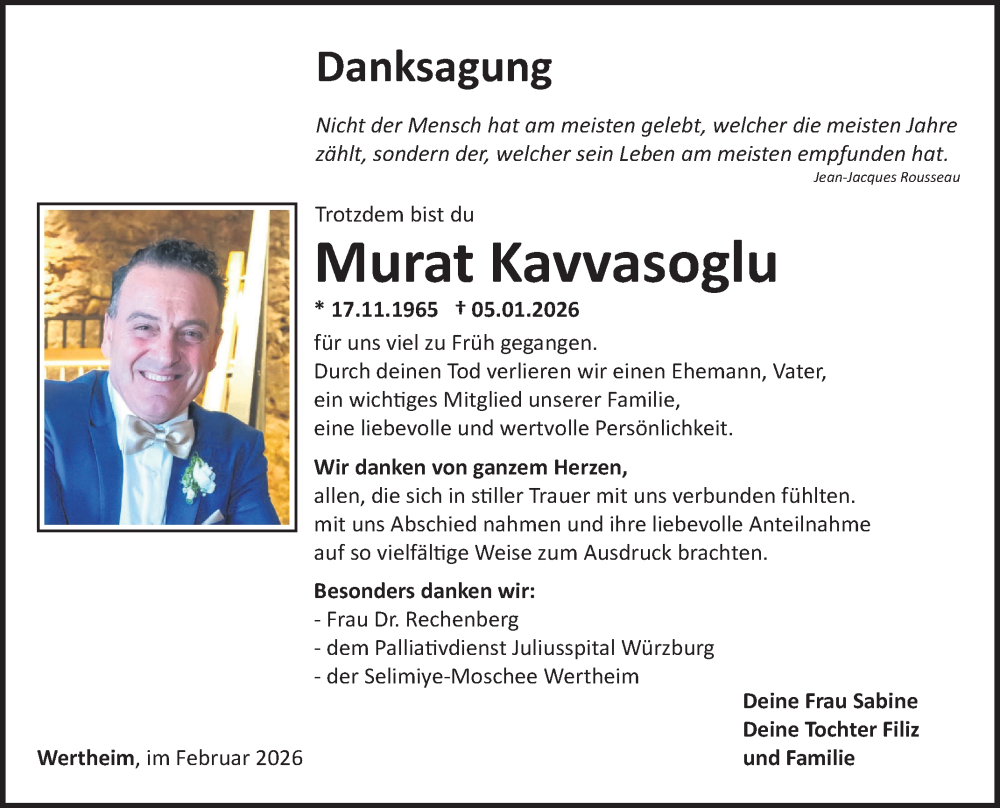 Hier finden Sie alle Traueranzeigen aus der Zeitung, die bisher für Murat Kavvasoglu erschienen sind. Weitere Traueranzeigen, die in der Zeitung erscheinen, werden hier ebenfalls aufgelistet